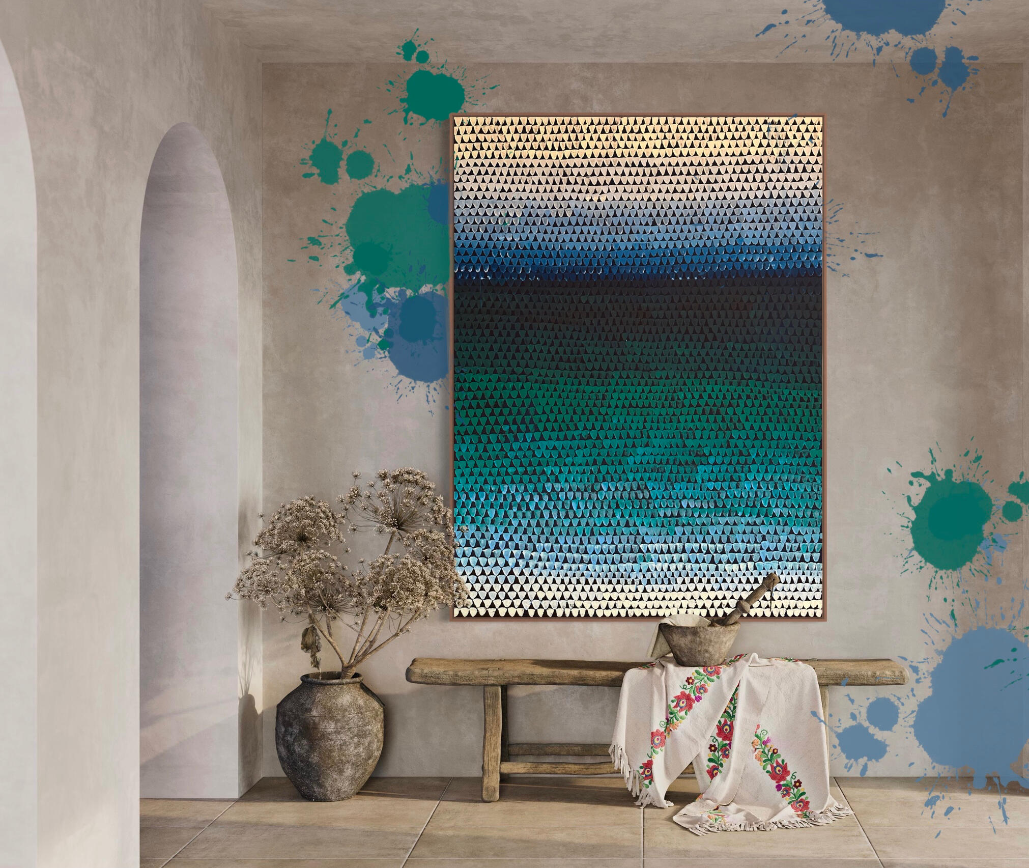 Through the use of monotonous patterns, I reflect the endless repetition of societal mantras and invite viewers to think beyond the apparent simplicity. Other works of mine thrive on contrasts between colors and shapes, combining photography with painting. They create a tension between the concrete and the abstract. This duality is a central theme of my art: everything has a second layer, a hidden truth that is only revealed upon closer inspection. I pose questions, leave room for interpretation, and invite the viewer to become part of the art and engage in self-reflection.