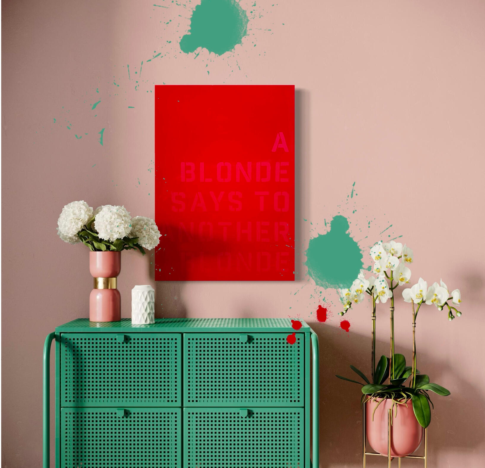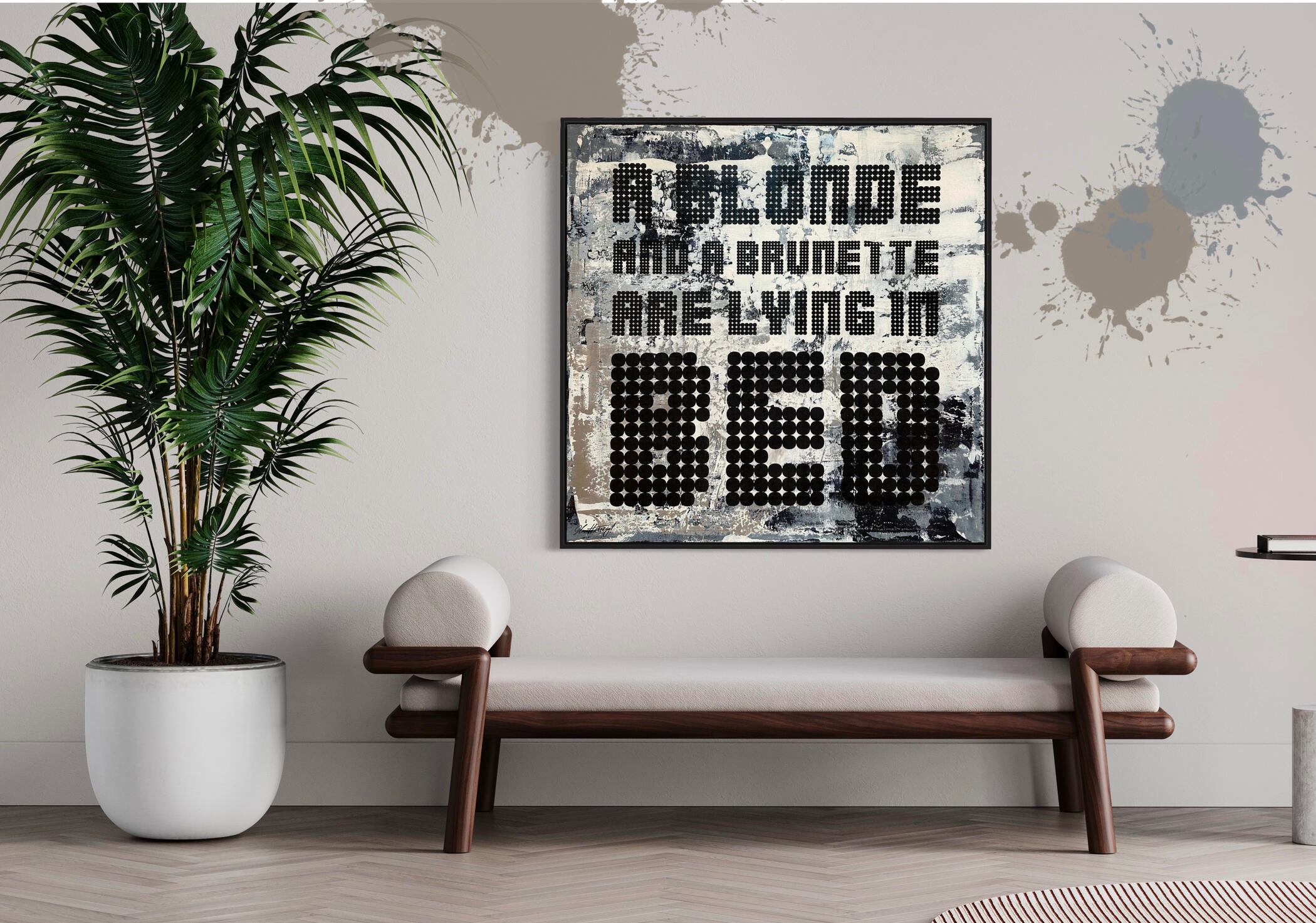 My works cannot be neatly categorized into a traditional box, yet the influences of Pop Art are unmistakable—in the use of bold colors, striking typography, and playful repetitions. This style creates an accessible surface that draws the viewer in—only to confront them with questions and contradictions. My works challenge us to reflect on human behavior, consumer culture, and societal norms.