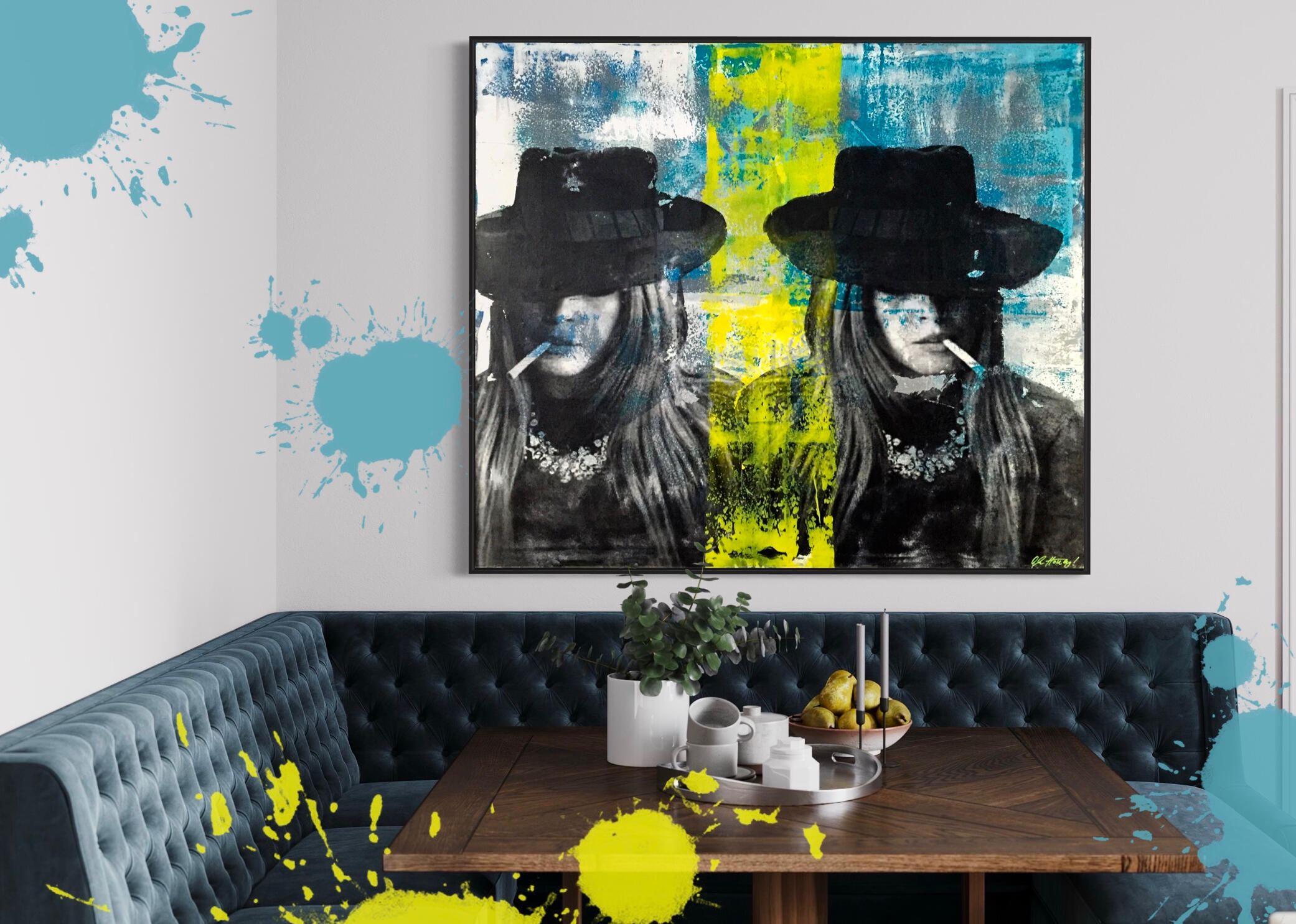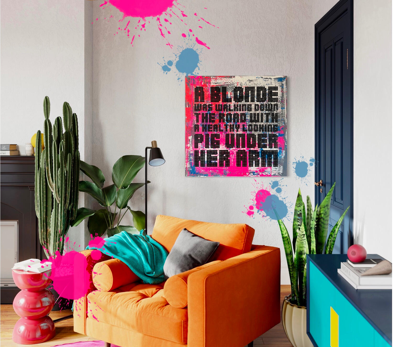 Meine Werke lassen sich nicht in eine klassische Schublade stecken, doch die Einflüsse der Pop-Art sind deutlich erkennbar – in der Wahl kräftiger Farben, ausdrucksstarker Typografie und spielerischer Wiederholungen. Dieser Stil schafft eine zugängliche Oberfläche und zieht den Betrachter an – nur um ihn dann mit Fragen und Widersprüchen zu konfrontieren. Meine Werke fordern dazu auf, menschliches Verhalten, Konsumkultur und gesellschaftliche Normen zu hinterfragen.
