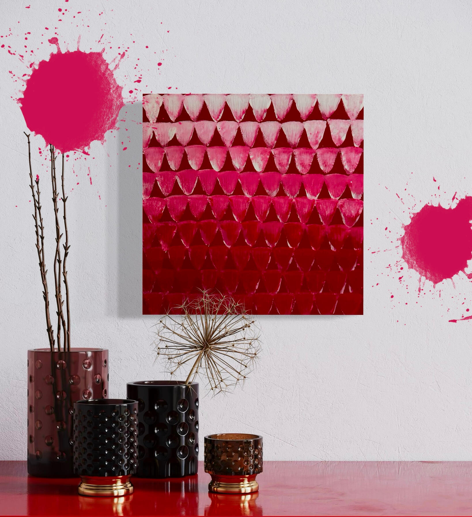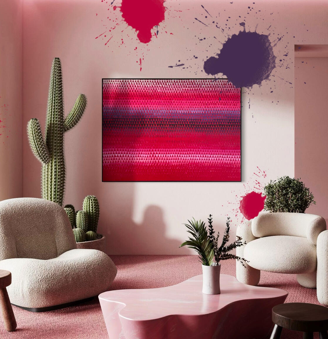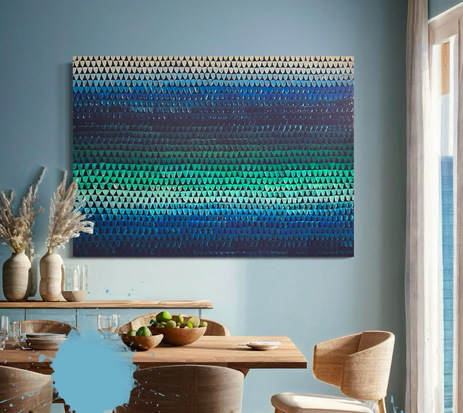 Durch den Einsatz monotoner Muster reflektiere ich die endlose Wiederholung gesellschaftlicher Mantras und fordere dazu auf, über die scheinbare Einfachheit hinauszudenken. Andere Werke von mir leben von Kontrasten zwischen Farben und Formen, von der Kombination aus Fotografie und Malerei. Sie erzeugen eine Spannung zwischen dem Konkreten und dem Abstrakten. Diese Dualität ist ein zentrales Thema meiner Kunst: Alles hat eine zweite Ebene, eine verborgene Wahrheit, die nur entdeckt wird, wenn man genauer hinsieht. Ich stelle Fragen, lasse Raum für Interpretation und überlasse es dem Betrachter, Teil der Kunst zu werden und sich selbst zu reflektieren.
